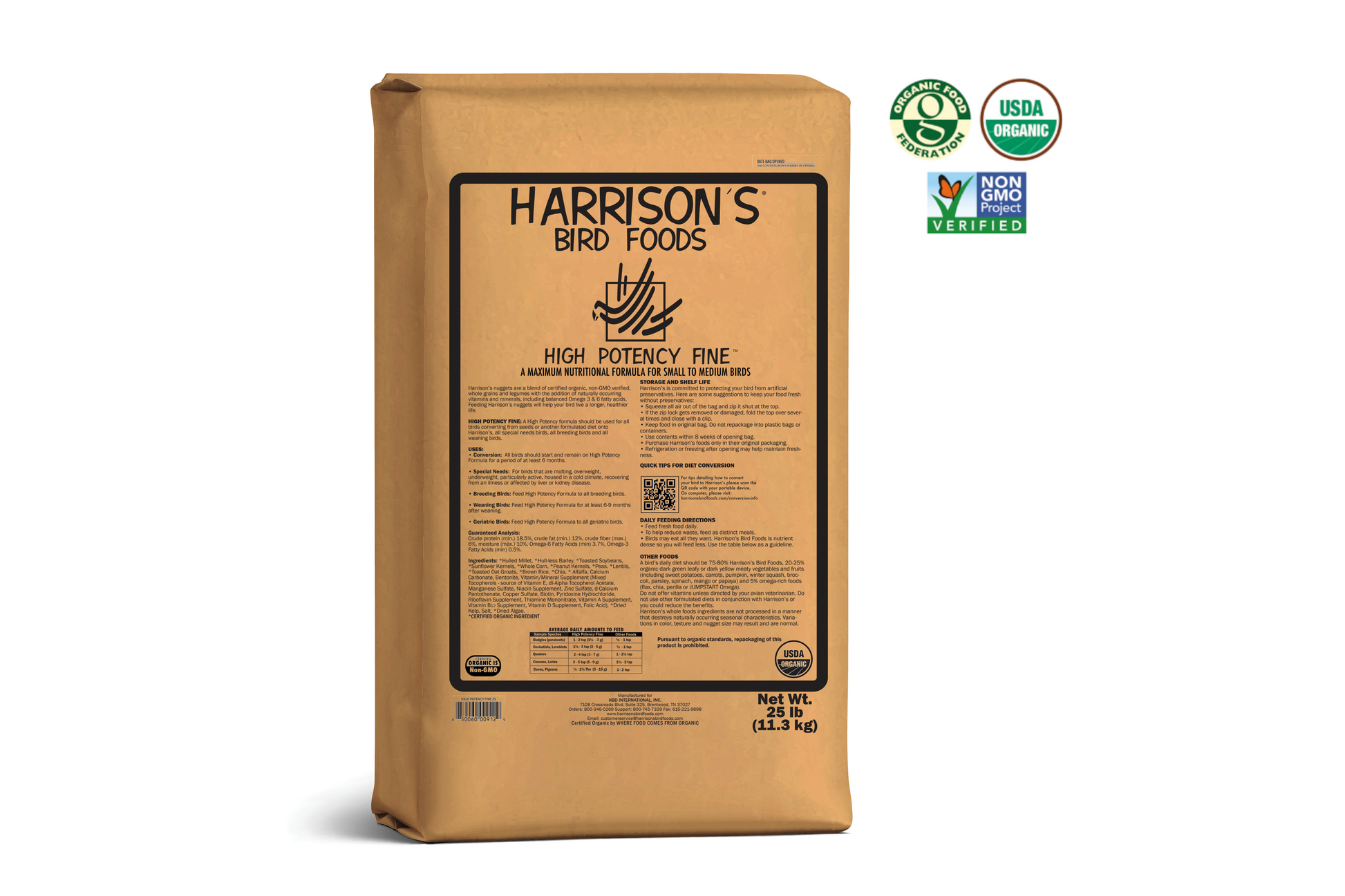 - For small to medium sized birds that are being converted from seeds or any other diet. Birds should initially be fed High Potency Formula for a period of at least 6 months before switching to an Adult Lifetime Formula. See Dr Harrison explain the benefits of High Potency diets for birds who are converting here.
